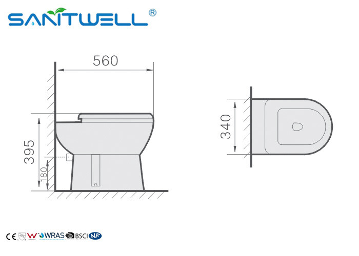 | Installation | Toilette en céramique de base, couverture de PP/UF, mécanisme de rinçage |